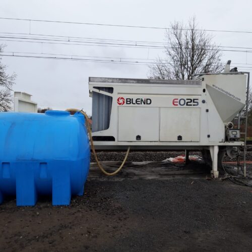 Deze betoncentrale van Blend heeft verschillende opties, zoals een kit elektrische vibrators, transportband, watertank, geïntegreerde cementsilo’s, etc.